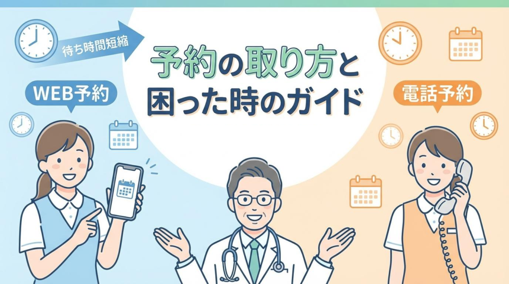当院では、皆様の待ち時間を短縮し、スムーズに診察を行うため、時間帯予約を導入しております。ご予約は、インターネット(WEB)または専用の自動音声電話からお取りいただけます。
