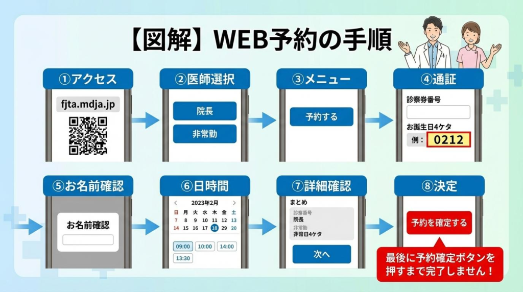 1. 当院のWEB予約専用ページ( https://fjta.mdja.jp/ )にアクセスします 。